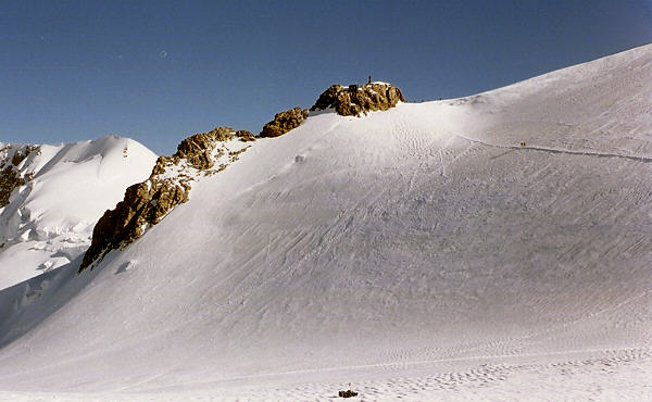 Bergschrundes sind die letzten 20 m zum Gipfelgrat steil